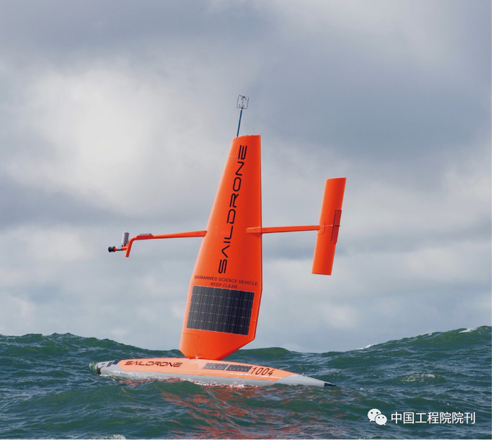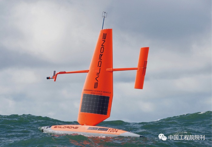 其他无人船已经代替科学家进入了地球最艰苦的环境。Saildrone帆船是由位于美国加利福尼亚州阿拉米达的Saildrone公司打造的,看起来有点像风帆冲浪板(图3)。该帆船由一个垂直的帆与冲浪板形态的船体组成,主要由风力推动行驶。三种型号的Saildrone帆船长度为7~22 m,可携带各种仪器,包括绘制海底景观的多波束声呐探测仪以及测量水浪高度的惯性测量装置。Saildrone帆船在科学领域已取得一些成就。2019年,Saildrone帆船绕南极洲航行并收集碳循环数据,2021年其中一艘Saildrone帆船驶进飓风山姆(Sam)中拍摄视频并进行测量。