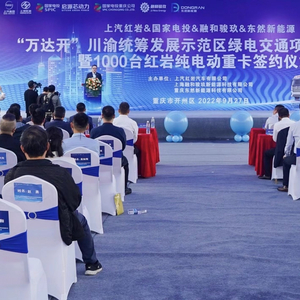 上汽红岩汽车有限公司总经理楼建平在致辞中表示,此次上汽红岩、国家电投、东然新能源三方深度合作,共同打造的“川渝新能源重卡——万达开示范项目”,该项目主要围绕砂石、电煤、商砼物流等高频重载运输场景展开。上汽红岩将不断发挥自身的新能源重卡汽车科技研发和生产优势,为我国“双碳”目标实现起到积极助推作用。