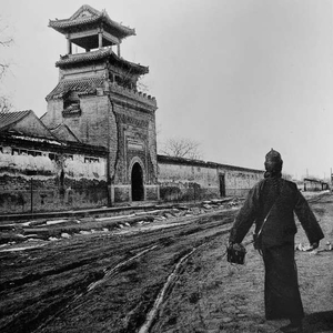 辛亥革命后,袁世凯任民国大总统时接管了清室的西苑,把中南海作为总统府。按中国的传统习俗,府邸正门要向南开,于是由当时的内务总理朱启钤主持,将位于中南海南墙内仅几米的宝月楼底层中间打通,改为大门,移端王府的一对石狮置于门前,又将挡在前面的皇城红墙扒开一段缺口,加砌两道八字墙,请晚清文人袁励准书“新华门”馆阁体匾额一幅,悬于门上,自此宝月楼更名为“新华门”,取代西苑门成为了中南海的正门,并一直沿用至今;而对面的清真寺,袁世凯遂以不宜直对总统府为名,下令拆除,并修了一道灰色花砖墙,用以遮挡路南的民居。一座楼变成一道门,敞开的是历史往事的风云诡谲;一道墙取代一座寺,遮蔽的是民间世相的落落红尘,而我们今天依然可以持续这个话题,却是得益于阿尔伯特·卡恩“地球档案”的唤醒。现在看来,这张照片拍摄得非常及时,它果断地在一个时间节点,记录下了往事的印迹,几年后它的主体连带那个王朝,便在历史的进程中灰飞烟灭了。也许当时的拍摄,只是从建筑景观实录的角度考虑,并不了解它背后的复杂意味,但那个站立的人物背影,却成为一种悄然的暗示,正如法国前国务部长查勒·帕斯嘎在《旧京影像·持久的幻影?》一书的出版序言中说的:“地球档案的建立很显然是不屈服于事物变化无穷的偶然性,因此才能成为人们了解今天的有力历史见证。”