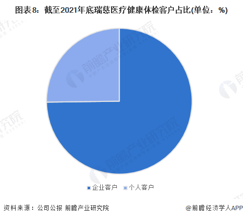 再从公司健康服务客户群体来看,2021年,瑞慈医疗体检业务共接待客户324万人,其中企业客户为公司健康体检的主要客户群,占比约为74.8。据公司公报信息,2021年公司企业客户和个人客户的接待数量较上年同期增加23.5%、44%,人均消费单价为523元。