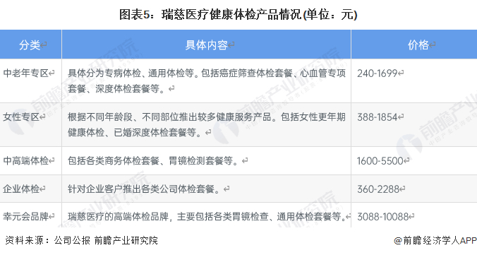 从瑞慈医疗具体产品布局来看,瑞慈医疗旗下体检品牌包括中高端品牌瑞慈体检及高端品牌幸元会国际体检中心。具体产品信息如下: