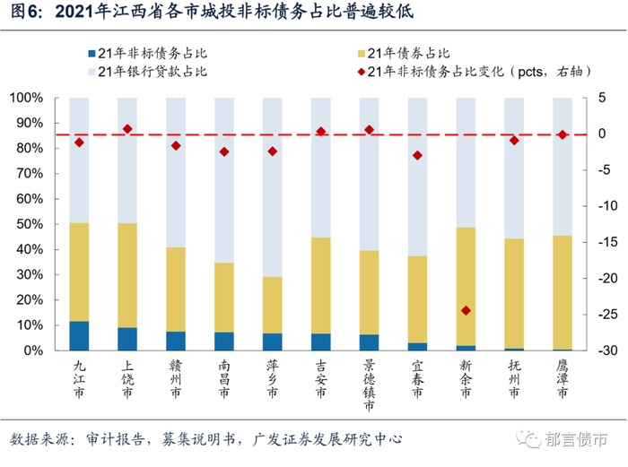 (一)江西省各市城投非标债务占比普遍较低