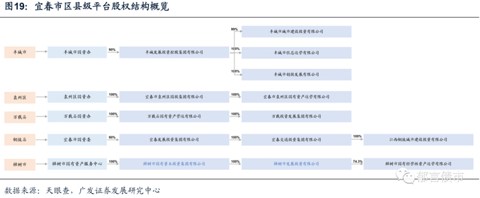 平台概况方面,宜春市有15家存量债平台,其中市级平台4家,区县级平台10家,国家级园区平台1家。宜春市4家市级平台分别为宜春发展投资集团有限公司(“宜春发投”)、宜春市城市建设投资开发有限公司(“宜春城投”)、宜春交通投资集团有限公司(“宜春交投”)和宜春市国有资本投资运营集团有限公司(“宜春国资”),后三家均为宜春发投子公司。