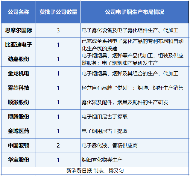 在上游生产端,8月以来,包括思摩尔国际、比亚迪电子、劲嘉股份、雾芯科技、中国波顿等多家上市企业公布其获得了一张或数张电子烟生产许可证。国家烟草专卖局虽然规定了每年企业的生产配额,但也承诺会根据实际产品销量灵活调整。