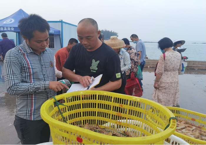 江洪渔港的“天光鱼市”远近闻名,吸引众多客商前来采购。
