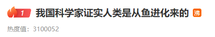今天,“我国科学家证实人类是从鱼进化来的”词条登上热搜第一位。网友们纷纷评论道:“所以摸鱼是一种返祖”“证实了我是咸鱼”“怪不得我的记忆只有7秒”……