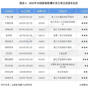 行业主要上市公司:广电计量(002967.SZ);开普检测(003008.SZ);华测检测(300012.SZ);电科院(300215.SZ);谱尼测试(300887.SZ);钢研纳克(300797.SZ)等。