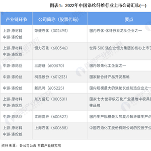 行业主要上市公司:桐昆股份(601233);新凤鸣(603225);东方盛虹(000301);江南高纤(600527);