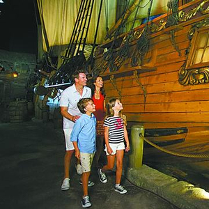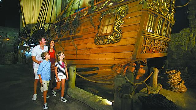 在拿骚海盗博物馆参观时,《环球时报》记者发现很多父母带着孩子来看战船(上图),这里的确是温顾历史的一个好去处——正如博物馆门口的海盗雕像(中图),栩栩如生地向人们讲述这座城市的沧桑变化。