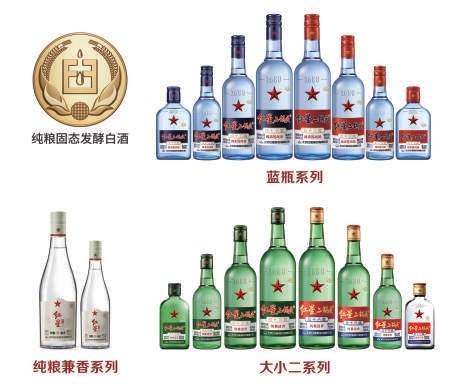 北京老字号红星,长期以来为了让消费者喝上纯正优质的二锅头,始终坚持纯粮固态酿造,旗下的“纯粮清香大小二系列”“绵柔纯粮蓝瓶系列”“纯粮兼香系列”“大曲酿”等主流光瓶产品,均获得了“纯粮固态发酵白酒标志”认证。其中,“纯粮清香大小二系列”以气味香馥、清香纯正、酒体协调、口味爽净的特征,长期以来获得行业及消费者的高度认可;“绵柔纯粮蓝瓶系列”在保留二锅头特色的基础上进行了绵柔感的提升,使产品既有二锅头的清香纯正,又符合大众喜欢绵柔口感的需求;“纯粮兼香系列”则精选优质高粱、玉米、小麦、大米、糯米为原料,经纯粮固态发酵,以独特的清浓兼香工艺开辟了一条差异化的路径。