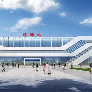 练塘站位于上海市青浦区,占地面积4500平方米,站房布置形式采用线正下式布局,旅客将利用高架站场下的进出站通道下进下出,站场采用2台4线平面布置方案,设到发线4条(含正线)。站房设计方案以“潺潺流水 魅力练塘”为概念,提炼江南特有的潺潺流水形态,通过简洁的建筑语汇编织出富有时代特征、蕴含地域符号的现代交通建筑形象。