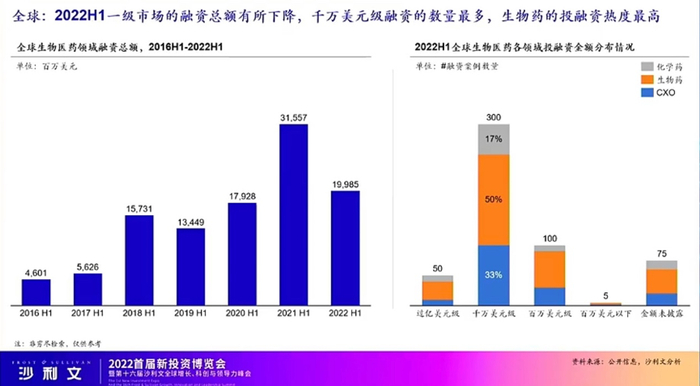 在2021年上半年,全球生物医药领域融资额达到峰值315.57亿美元,但毛化认为2021年较为特殊,“2021年受到2020年新冠疫情的驱动,有很多创新的技术以及对于生物科技行业的意识逐渐提高,所以不能与之相比较。”毛化表示。