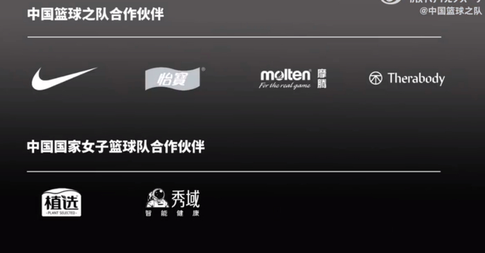 中国篮球队和女篮队目前的合作伙伴 图源微博账号@中国篮球之队