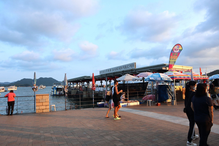 时近黄昏,西贡新公众码头天空出现粉蓝色彩。