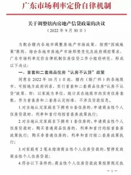 2014年9月30日,央行下发《关于进一步做好住房金融服务工作的通知》,通知强调“认贷不认房”,表示对拥有1套住房并已结清相应购房贷款的家庭,为改善居住条件再次申请贷款购买普通商品住房,银行业金融机构执行首套房贷款政策。
