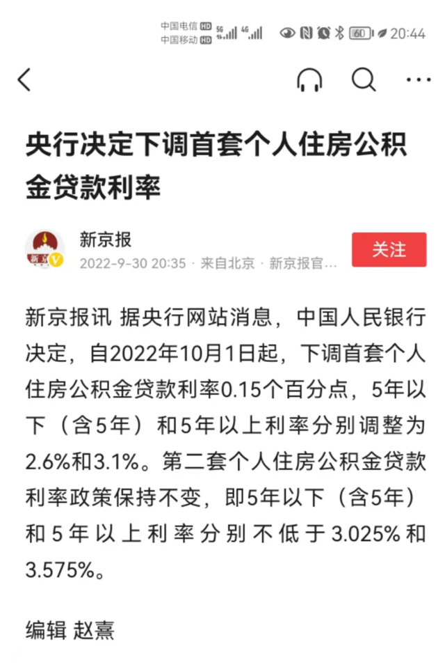 紧接着央行发文,自2022年10月1日起,下调首套个人住房公积金贷款利率0.15个百分点,5年以下(含5年)和5年以上利率分别调整为2.6%和3.1%。第二套个人住房公积金贷款利率政策保持不变,即5年以下(含5年)和5年以上利率分别不低于3.025%和3.575%。