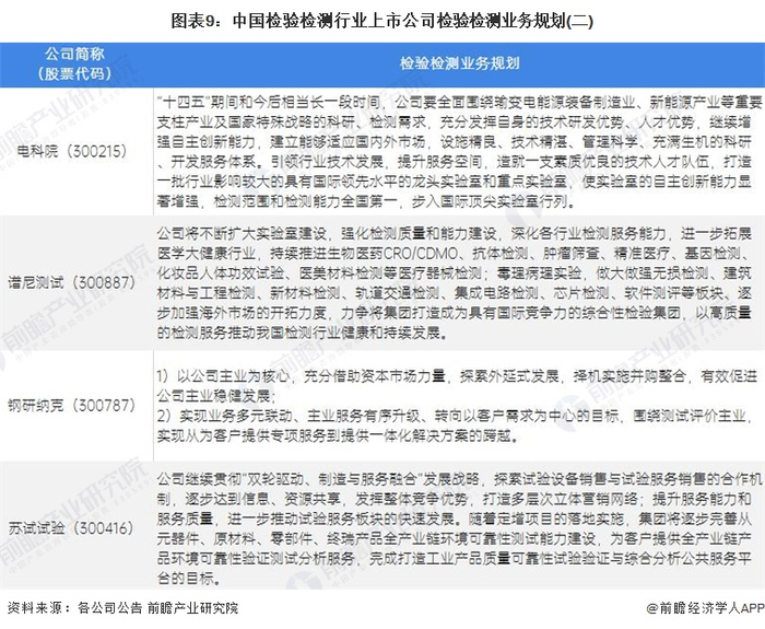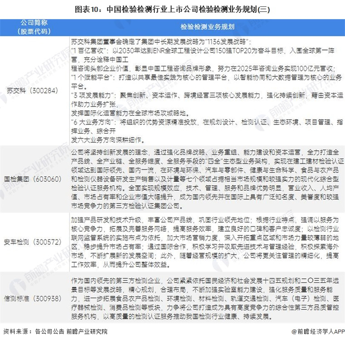 4、检验检测行业上市公司业务规划对比