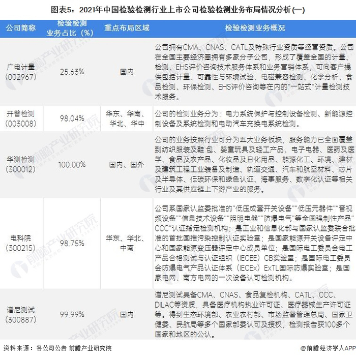2、检验检测行业上市公司业务布局对比