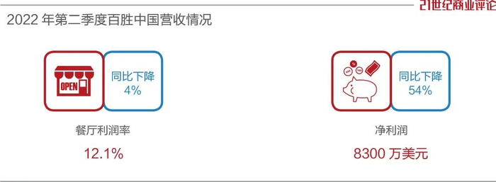 二季度,百胜中国实现营收21.3亿美元,上年同期为24.5亿美元;净利润8300万美元,同比下降54%;餐厅利润率12.1%,较2021年同期则下滑近4个百分点。