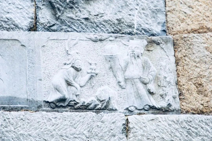 华亭古海塘碑图《加官进爵》,这是目前海塘上唯一发现的人物石刻