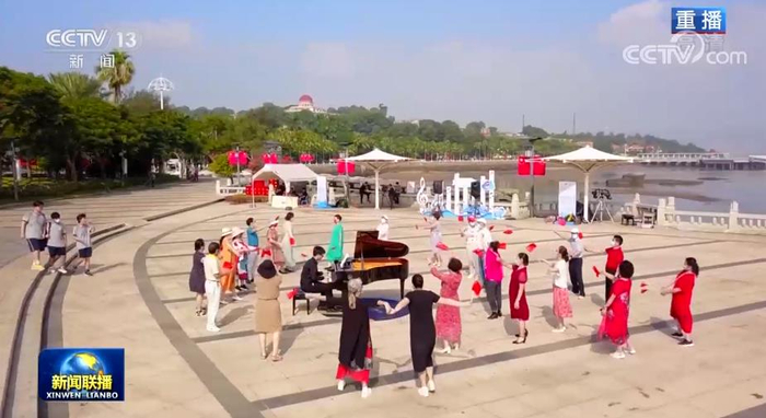 在厦门鼓浪屿,人们在《我和我的祖国》等乐曲声中载歌载舞,表达心中的喜悦之情;在安徽池州,稻田拔河比赛、农事体验等活动,让人们体会到农耕文化的乐趣;在千年古城杭州临安,“草编辫辫龙”、鳌鱼灯等民间传统艺术轮番上演,为大家带来一场非遗盛宴。