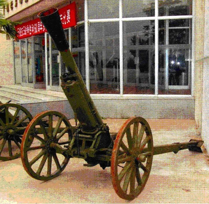 山炮是适合山地作战的火炮,体形小,重量轻,便于拆解。九四式山炮是日军在侵华战争期间的主力火炮之一,截止到1945年日本战败投降,日军九四式山炮一共生产约1500门。1947年,阎锡山控制的太原兵工厂成功仿制日军九四式山炮,命名为晋造36式75毫米山炮,总产量近300门。