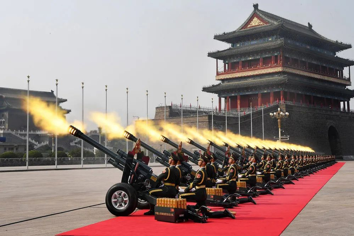2021年7月1日,庆祝中国共产党成立100周年大会在北京天安门广场隆重举行。56门礼炮鸣放100响,致敬党的百年光辉历程,昭示着新时代的中国以更加雄伟的身姿屹立在世界东方。据专家计算,这款礼炮在百米之外,声响可达115分贝,更加浑厚响亮。