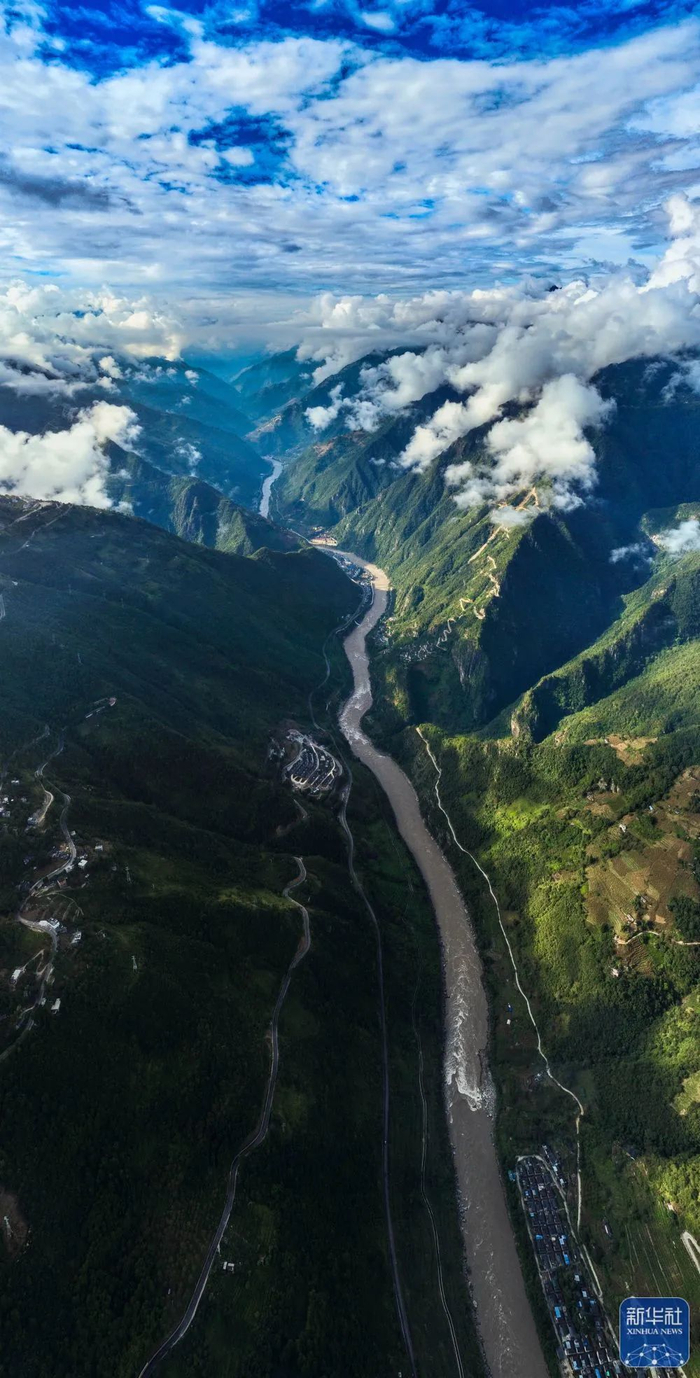 2022年9月13日拍摄的怒江州泸水市小沙坝大桥(无人机照片)。新华社记者 江文耀 摄