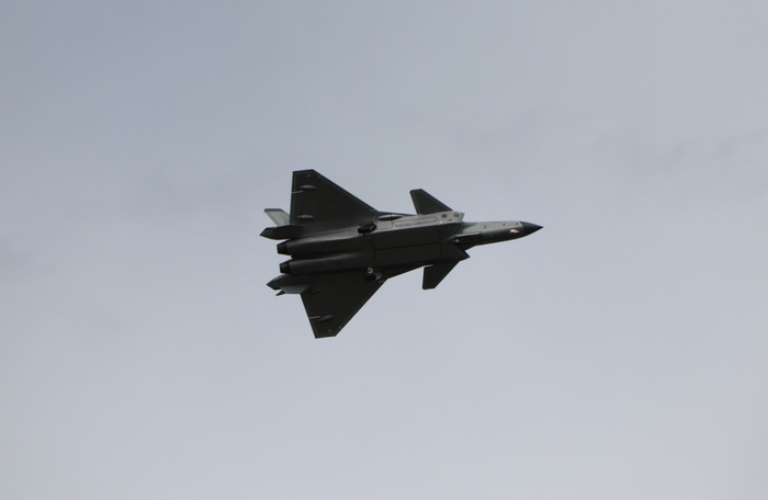 歼-20战机进行飞行表演。澎湃新闻记者 谢瑞强 摄