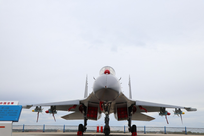 静态展示的歼-11B战机。澎湃新闻记者 谢瑞强 摄