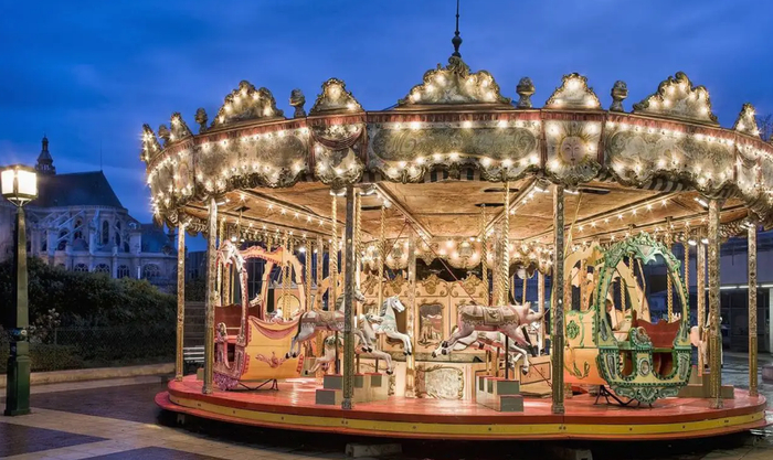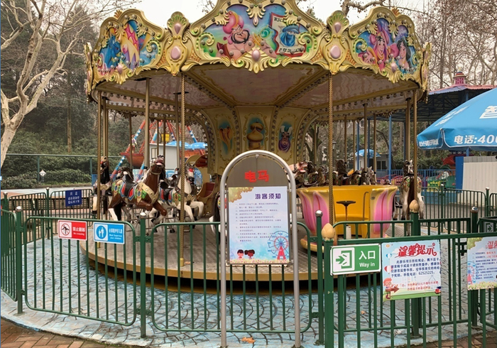 旋转木马是每个女孩心中的梦幻舞台,它充满了颜色鲜艳并且雕刻精美的饰物,并配以变幻的灯彩,当它转动的时候,则会响起欢快的音乐,置身其中的小棉袄仿佛就化身成了公主。