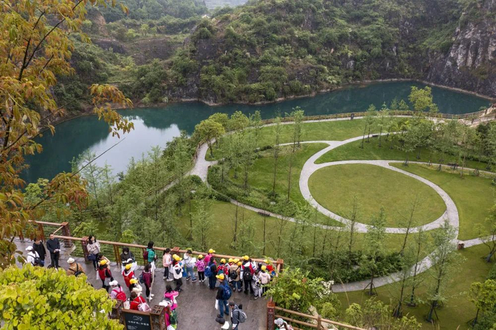 这里曾是重庆市最大的石灰岩矿区,2016年以前,该矿区还是满目疮痍的废弃矿坑群。在长江经济带共抓大保护的理念指引下,当地通过消除安全隐患、植绿覆土、保护坑中水体等生态修复工程,实现了变废为宝。