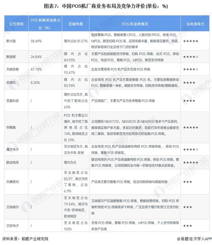 4、中国POS机行业企业布局及竞争力评价