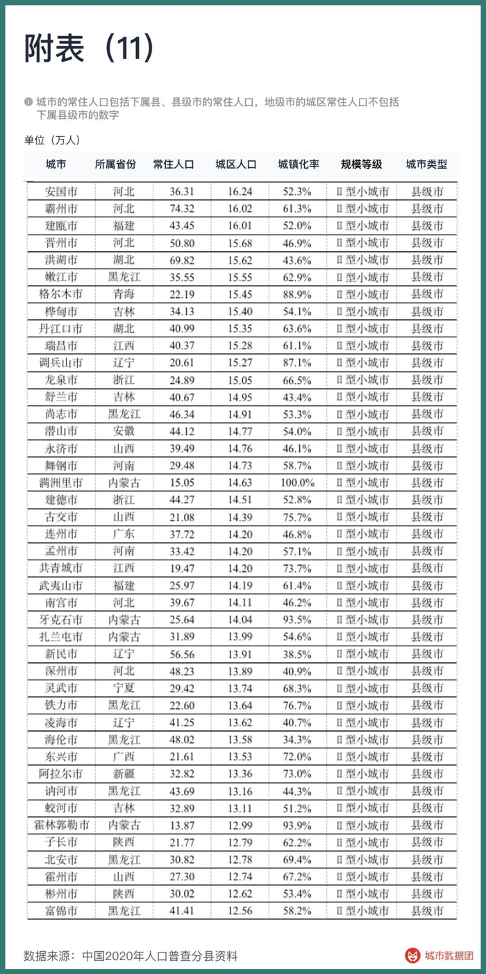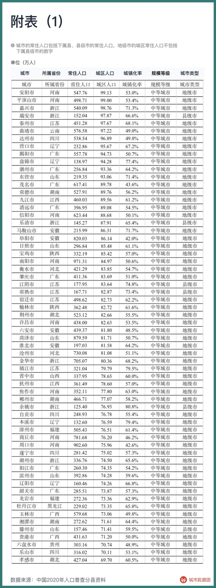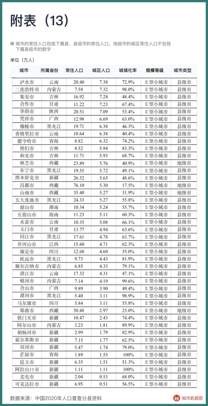 《求是》杂志并未提及。而新近出版的《中国2020年人口普查分县资料》(以下称“七普分县数据”)则为更多的城市规模划分提供了数据基础。与以往不同,这份七普分县数据提供了“城区人口”指标,并覆盖了全部的683个城市。