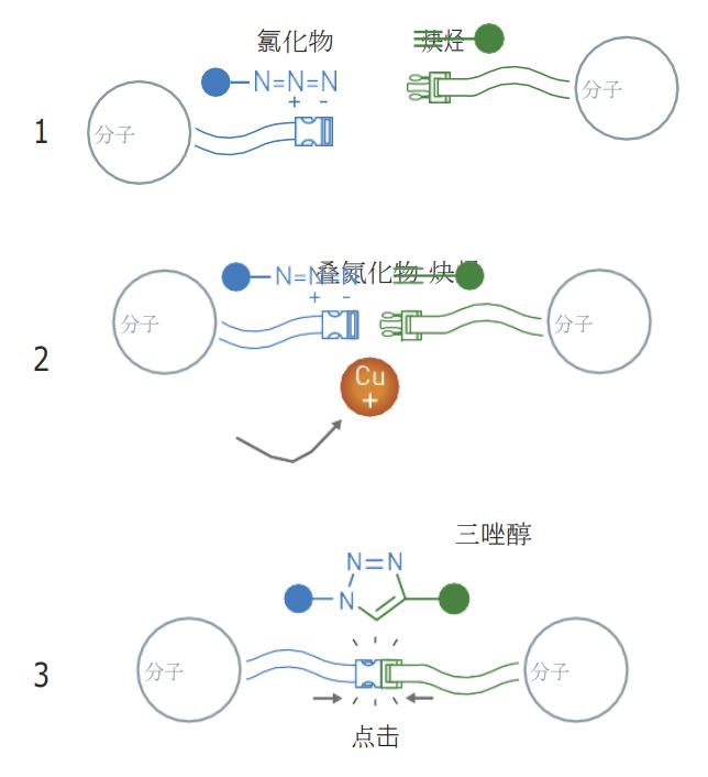而这个铜催化的叠氮-炔环化,正是点击化学皇冠上的明珠——让分子click的“魔术扣”。此后,化学家们不断对“分子魔术扣”进行优化,让它可以安装到尽可能多的有机分子上。