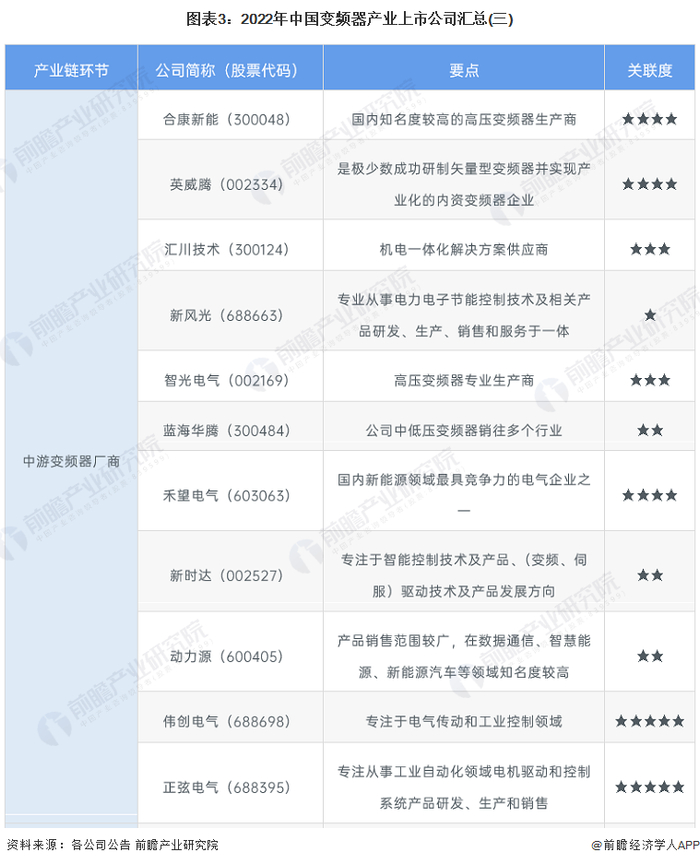 行业主要上市公司:合康新能(300048);英威腾(002334);汇川技术(300124);新风光(688663);智光电气(002169);蓝海华腾(300484);禾望电气(603063);新时达(002527);动力源(600405);伟创电气(688698);正弦电气(688395)等