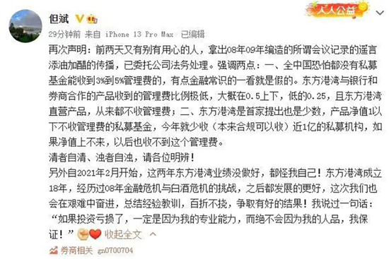 刚刚辟谣过网传会议纪要的但斌,又辟谣了!
