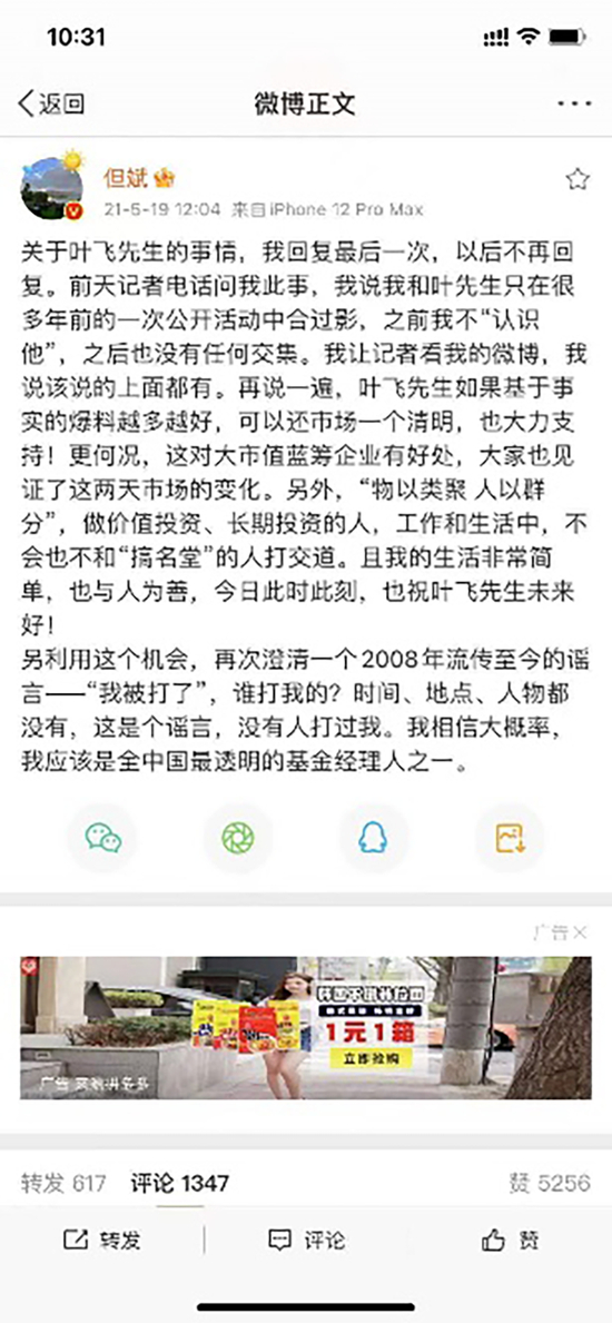 类似的还有,去年5月,市场还传闻称但斌因业绩差而被人打过,对此但斌亦是发微博澄清,此传言为谣言。