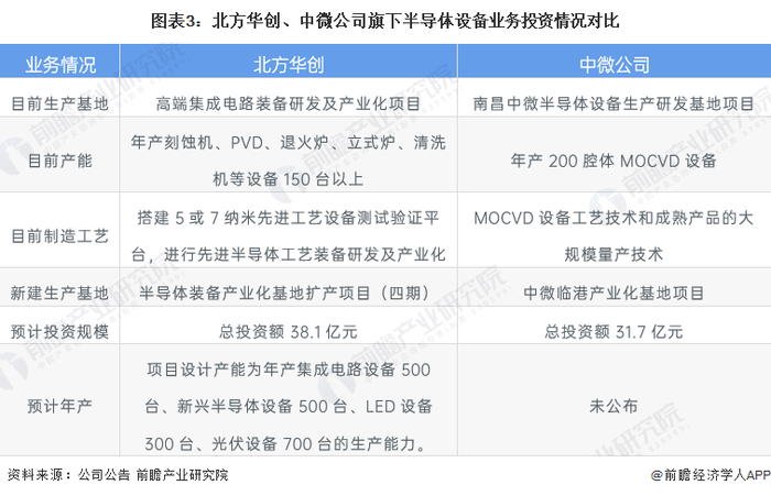 整体来看两家公司新建生产基地总投资额上,北方华创的投资规模更大,产能更高。
