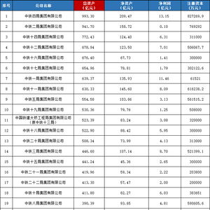 从总资产规模来看,中铁1局至25局,总资产规模超过600亿元的工程局有8家。中铁四局以993.30亿元的总资产排在25个工程局中首位,中铁二局总资产941.70亿元排在第二位。