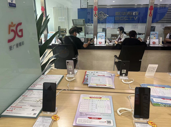 “只要确保使用满一年,办理广电5G套餐就能享受6折优惠,最低套餐只需要23元。”在中国广电劲松店里,工作人员拿出5G套餐宣传单介绍。距离中国广电192号段正式在北京启动试商用已经过去三月有余,然而记者走访北京三个区的中国广电营业厅却发现办卡人数并不多。