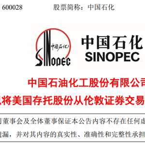 2022年10月3日,中国石油化工股份公司发布重要公告:拟将美国存托股份于11月1日前后在伦敦证券交易所退市。