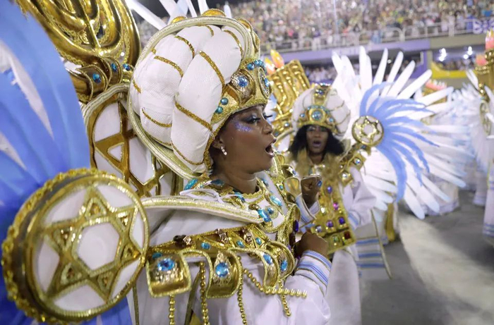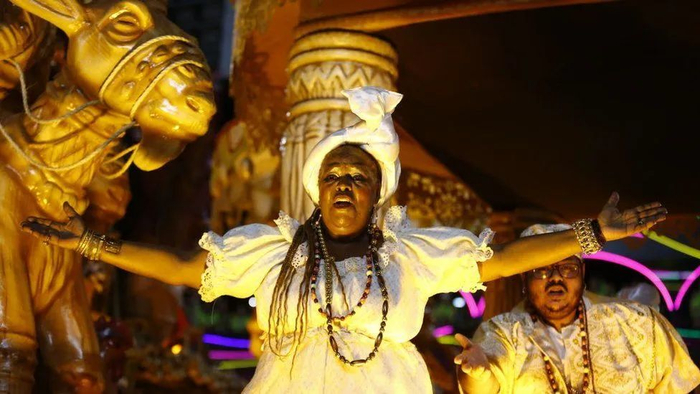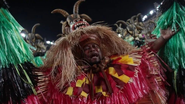 对巴西人来说,巴西狂欢节最重要的一项庆祝活动便是桑巴舞大赛。桑巴舞是源于非洲土著人的一种宗教仪式舞。在葡萄牙殖民时期,大量非洲土著人前往巴西,同时也带来了特有的宗教仪式舞。而后,这种舞蹈与该地的文化逐步融合,最终演变为桑巴舞。每年巴西狂欢节,各大城市的桑巴舞学校会举办竞技赛。来自桑巴舞学校的学员也会走上街头,穿各种主题的服装跳桑巴舞。值得一提的是,桑巴舞者穿着的服装,也不乏中国元素。2010年,巴西雷斯廷加桑巴舞团便使用了中国风的服装和队形,为观众展现了一幅“阴阳八卦”画。