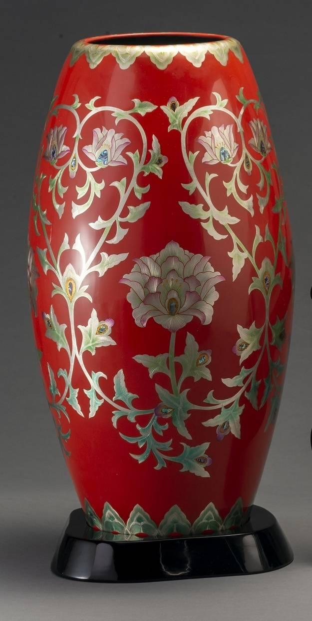 这件作品从构思到完成,用了将近一年的时间。这一年中,为了将设计思想落实到实物之上,尹利萍坦诚地说道,确实是有一定难度的。无论是要做到金属片拼接而成的、通高近55厘米的瓶身没有一个接口,还是整体红色要红得一致,都不是简单的事情。“做漆器是讲究天时地利。当它和空气中的湿度、温度达到最佳组合的时候,颜色才是最漂亮的。所以我觉得这件作品真的是天时地利,这个红色呈现出来的,也是我想要的感觉。”