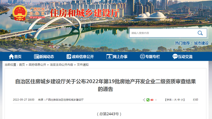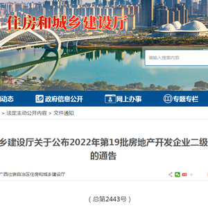 广西住建厅公布2022年第19批房地产开发企业二级资质审查结果