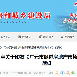 《广元市促进房地产市场平稳健康发展补充措施》印发