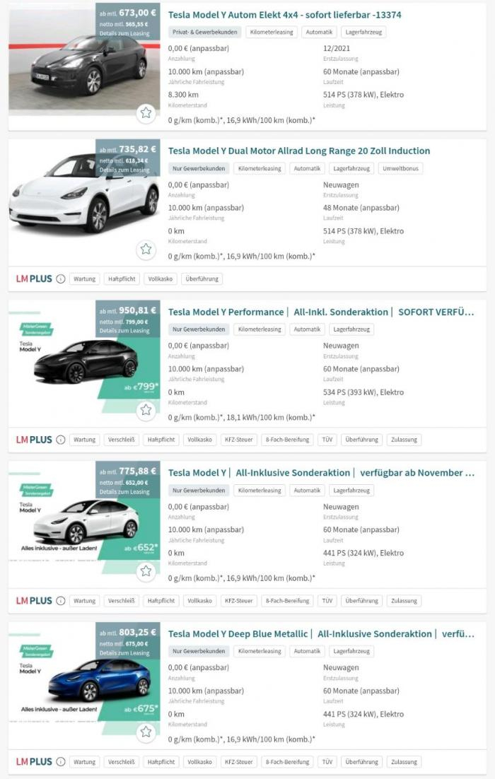 不过由于特斯拉产品过于畅销,事实上以629欧元难以真正租赁到Model Y。根据德国租赁平台leasingmarkt的数据显示,一辆特斯拉Model Y的实际月租赁价格在700欧元至900欧元之间。而大众ID.家族的最畅销车型ID.4的月租赁价格则在400欧元至500欧元之间。