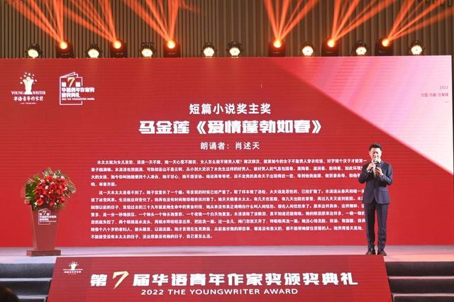 10月9日上午10点,第七届华语青年作家奖颁奖典礼,在美丽的成都龙泉驿东安湖畔举行。在颁奖典礼上,第七届“华语青年作家奖”八大奖项(中篇小说奖1名主奖,2名“双子星”奖;短篇小说奖1名主奖,2名“双子星”奖;非虚构作品奖1名;新批评奖1名)一一揭晓。其中来自宁夏西海固的作家马金莲《爱情蓬勃如春》获得短篇小说奖主奖。