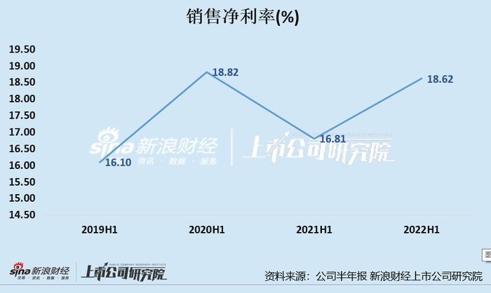 受益于味知香在期间费用端的控制,公司近4年中报销售净利率维稳在15%以上。2022年上半年,公司的销售净利率为18.62%,较去年同期提升1.81个百分点。