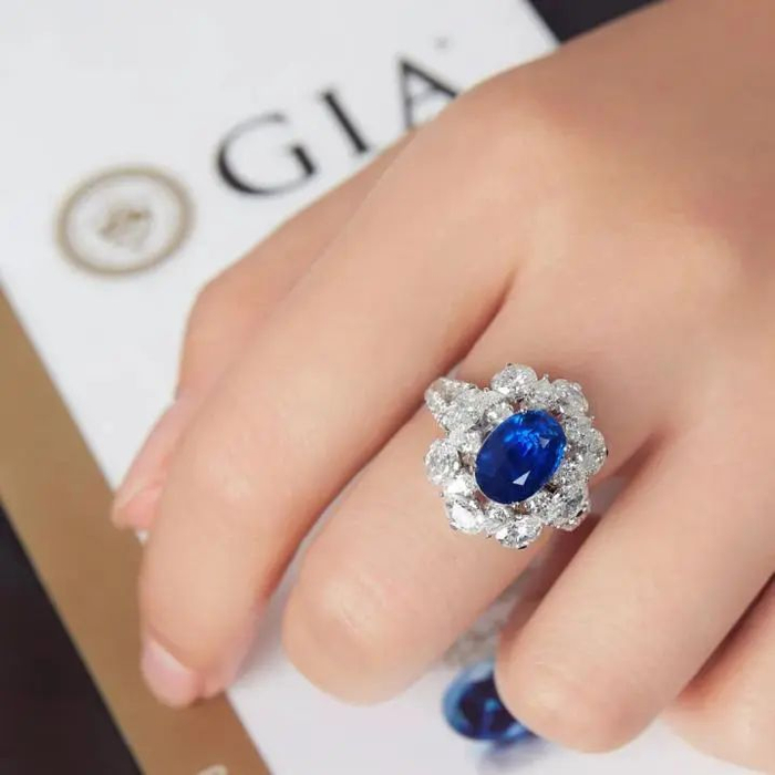 3.15克拉喀什米尔天然蓝宝石及钻石戒指